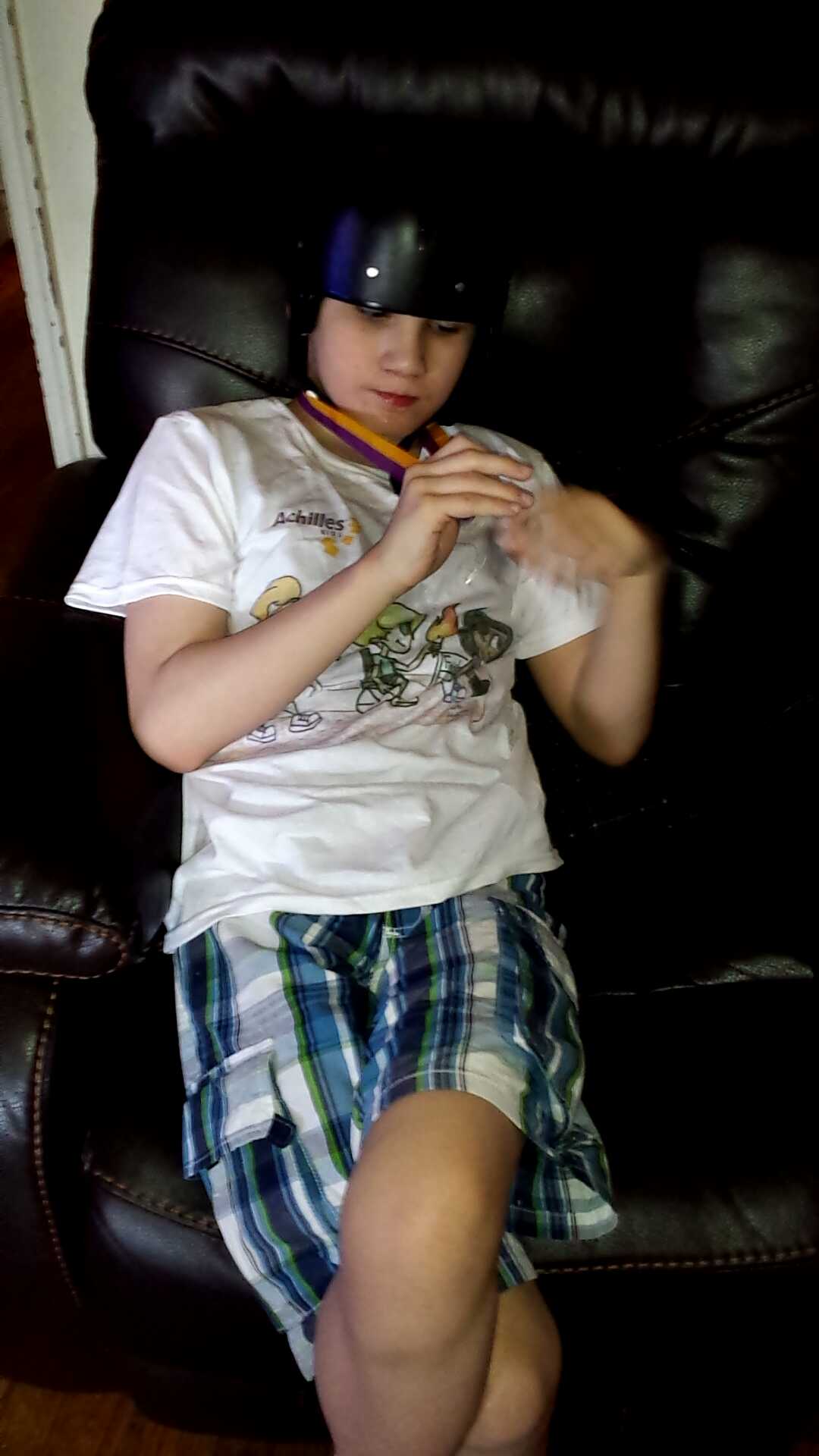 Dylan is home from school today because he is not feeling to good today. He didn’t sleep to well last night either and he had few seizures I believe brought by lack of sleep. I think he has a sinus infection a lot of sneezing and a runny nose. His awards ceremony went well yesterday.He received a medal, a certificate, and a new pair of tennis shoes he also got a cute t- shirt.