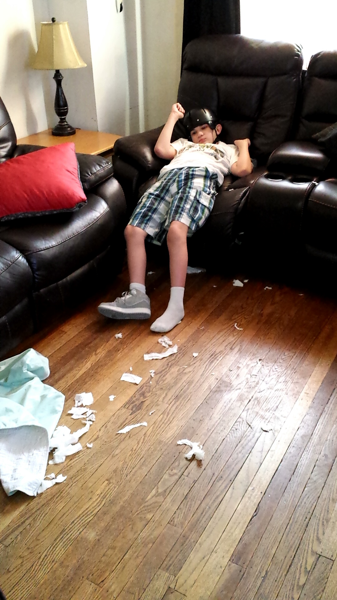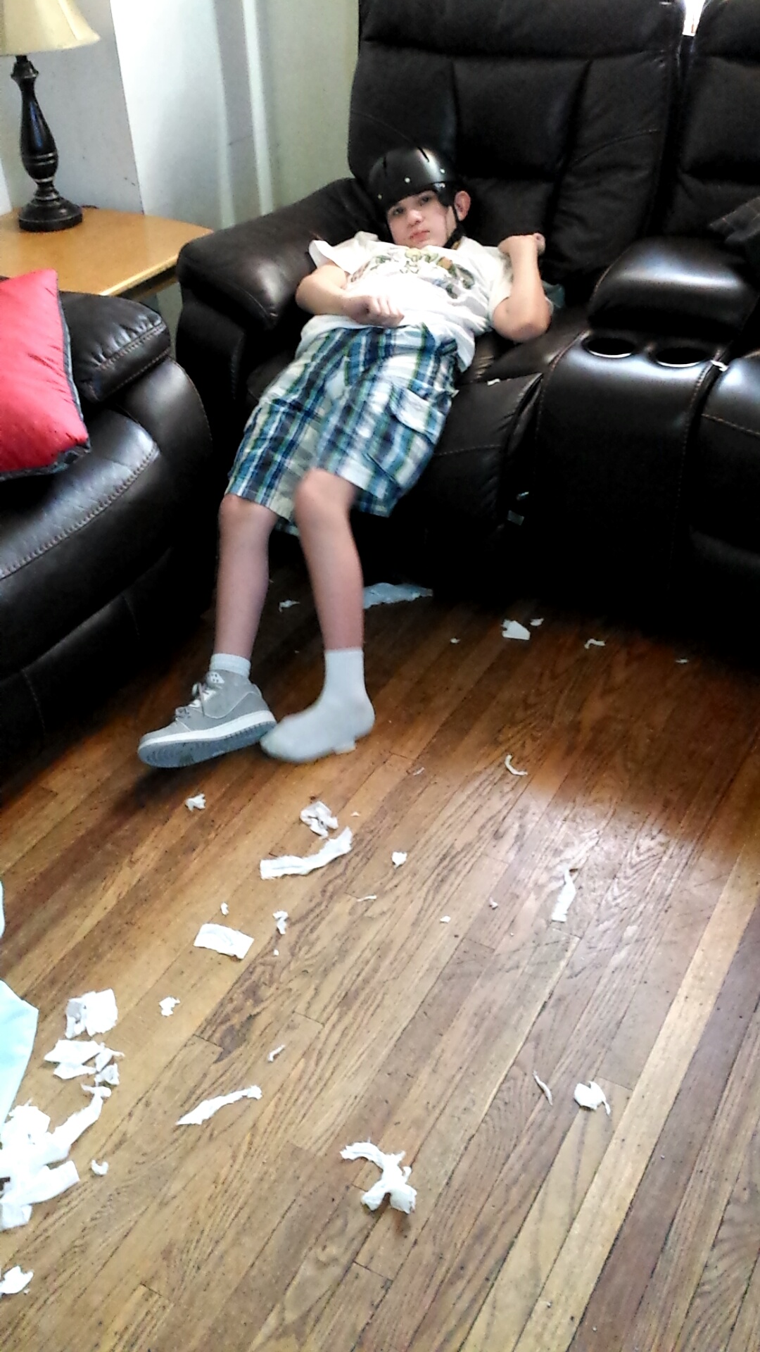 Dylan was sitting in the living room yesterday after he got home from school. I forgot to move the tissue box off the table. I walk into the living room to find tissues tore up all over the place. I couldn’t help but laugh at what he did because it was my fault for not moving them. He seemed to be happy with what he had done.