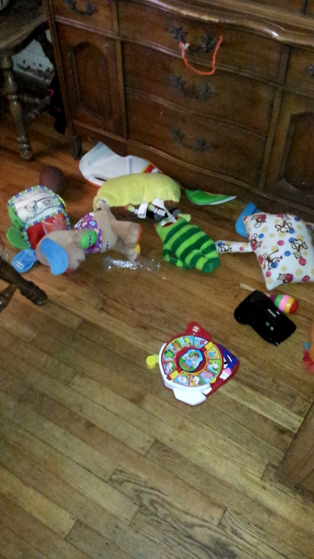 Dylan slept for seventeen hours after those damn seizures yesterday. He got up at five thirty and has been going strong ever since then. He has his toys all over the place. My poor little man slept right through father’s day. He had a seizure a few minutes ago and now he is just sitting in the living room. I hope it’s not a repeat of yesterday. I hate when the seizures rob him of his energy, it’s bad enough the medication he takes does the same thing. He is still in his pajamas. Here are a couple of pictures of him and his mess.