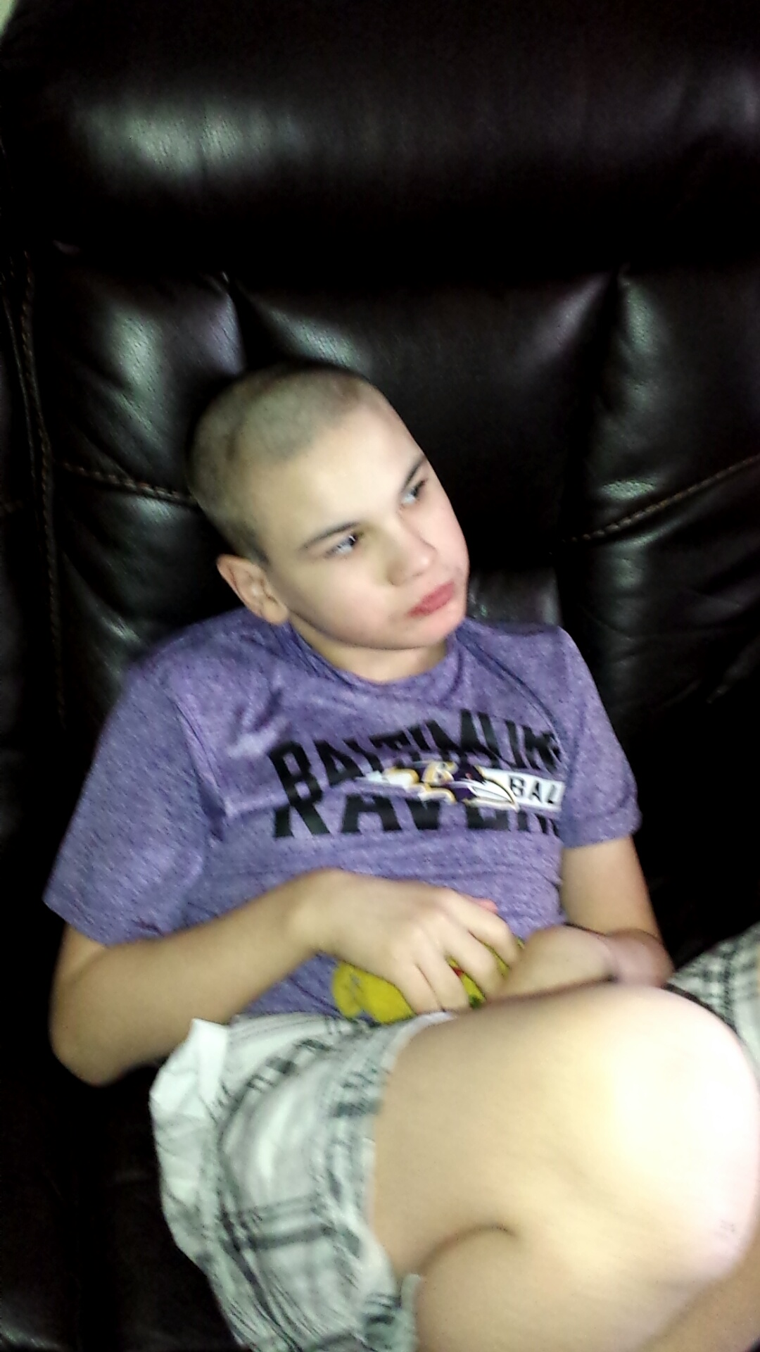 Dylan’s new haircut!! By Terri King These are the best pictures I could get of him. We got it so short because he wears the helmet all of the time and, it makes him sweat a lot. Share this:TweetLike Loading...