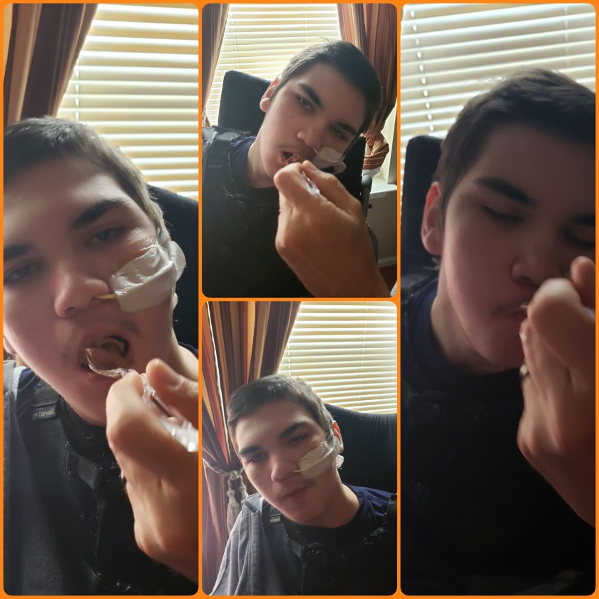 Superman had a good time at his cousin’s 13th birthday party today. He got to enjoy chocolate and vanilla ice cream today. He took a little nap for a little while. It was nice to see everyone. I hope the Birthday girl enjoyed her day. It will be a year since Dylan was hospitalized on coming up on Halloween. He, still isn’t back to his normal self but is continuing to improve slowly.