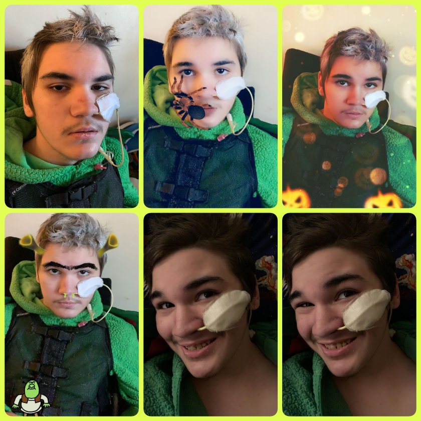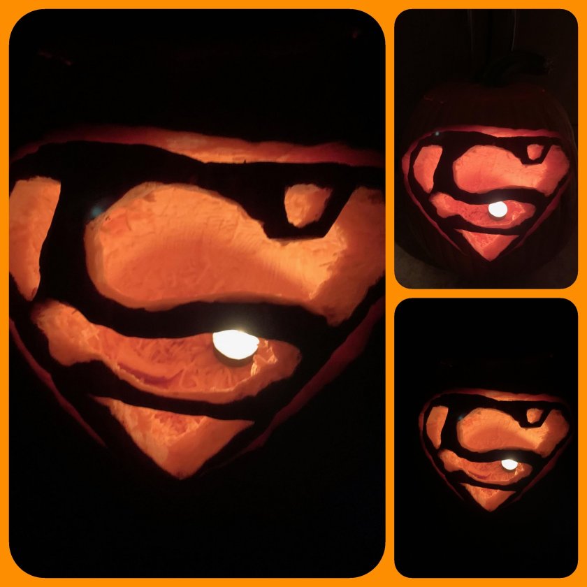 Superman didn’t go trick or treating. He did have some fun at home though. His sister took some snapchat pictures of him. His brother carved a pumpkin in the Superman emblem. So, I can say he had better Halloween than last year he is not in the hospital.